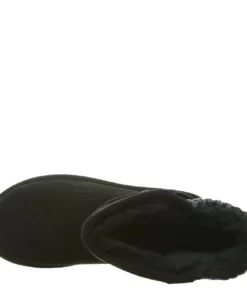 Our classic ‘Boshie’ in suede and knit back now available in wide width! The suede upper extends up the front of the shaft, with the knit down the back. Attractive branded BEARPAW® buckles add some extra flair. The height of this cozy boot is approximately 9 inches in the back, 10 inches in the front, measured from the base of the sole with a 14 inch circumference.