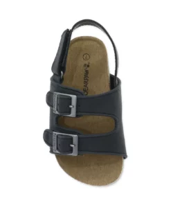 This simple ankle strap sandal will polish off any outfit for your little one. Decorative buckle straps are finished with hook and loop closure to make getting these on and off a breeze! Faux leather upper, microsuede top-cover over latex cushioned footbed, cork infused midsole, EVA insert and semi-clear TPR outsole.