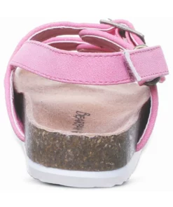 This simple ankle strap sandal will polish off any outfit for your little one. Decorative buckle straps are finished with hook and loop closure to make getting these on and off a breeze! Faux leather upper, microsuede top-cover over latex cushioned footbed, cork infused midsole, EVA insert and semi-clear TPR outsole.