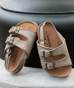 This simple ankle strap sandal will polish off any outfit for your little one. Decorative buckle straps are finished with hook and loop closure to make getting these on and off a breeze! Faux leather upper, microsuede top-cover over latex cushioned footbed, cork infused midsole, EVA insert and semi-clear TPR outsole.