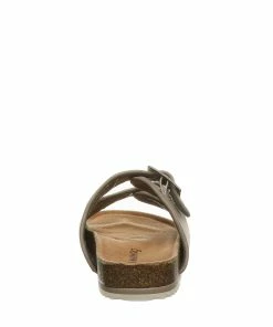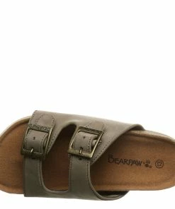 Simple can be stylish and bring effortless versatility to sunny day ensembles. Your little miss will dazzle her way through the day in these sweet, easy on-off slides. Faux leather upper accented with antique metal buckles, microsuede top-cover over latex cushioned footbed, cork infused midsole, EVA insert and semi-clear TPR outsole.