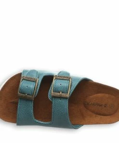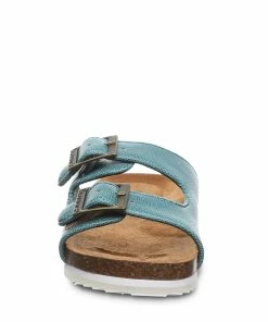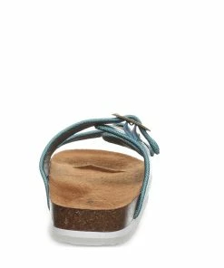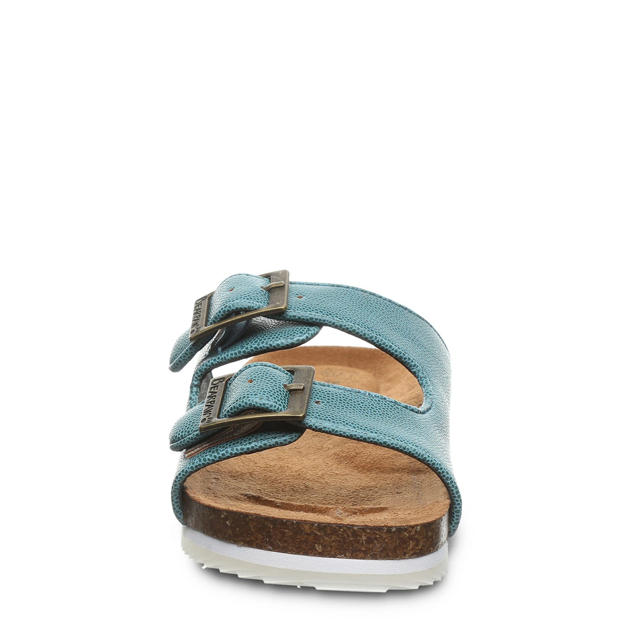 Simple can be stylish and bring effortless versatility to sunny day ensembles. Your little miss will dazzle her way through the day in these sweet, easy on-off slides. Faux leather upper accented with antique metal buckles, microsuede top-cover over latex cushioned footbed, cork infused midsole, EVA insert and semi-clear TPR outsole.
