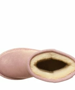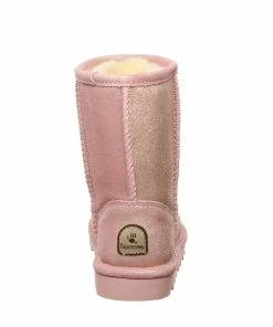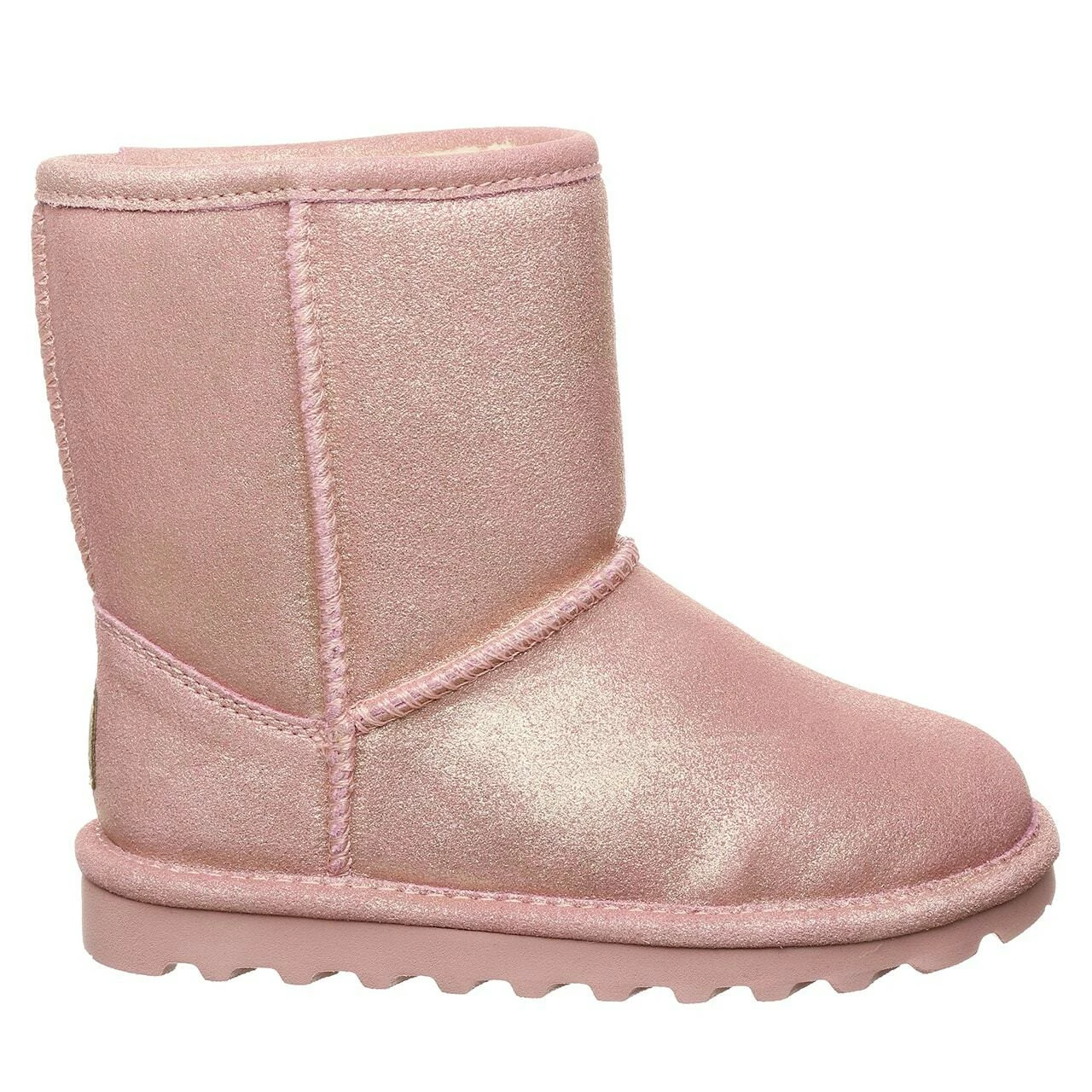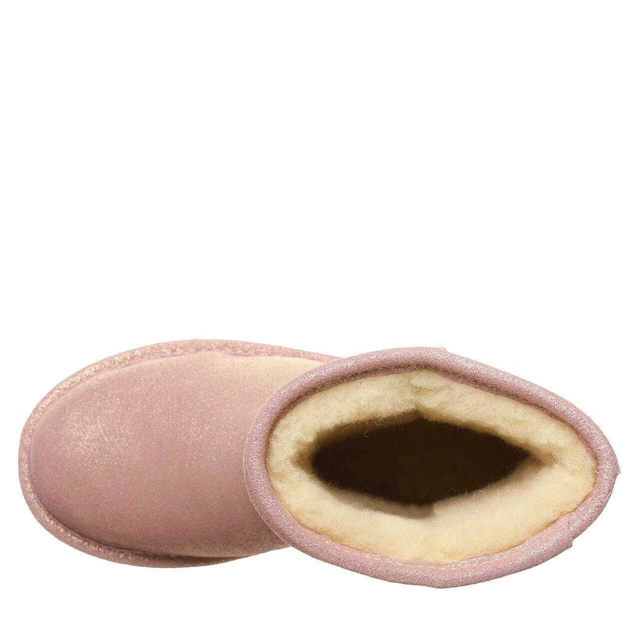 This 7 inch tall youth’s boot by BEARPAW offers a style that’s well paired with denim, a casual skirt, or country dress, with a ruggedly comfortable design ideal for kicking around town. The upper is made of soft suede for a natural look, and the boot’s luxuriously cozy lining provides increased cushioning and all-over comfort. The newly designed treaded rubber sole offers improved grip and durability.