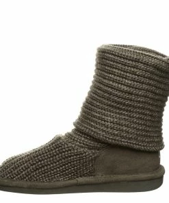 The Knit Tall Boot from BEARPAW® is the epitome of cutting edge fashion craftsmanship and quality – you can wear these tall or folded down for a fun look. These unique, cozy boots utilize a knit upper for a warm snug fit with a rounded toe, a genuine sheepskin lining to wick away moisture for comfort. BEARPAW® shoes and boots use the highest quality natural furs and genuine sheepskin.