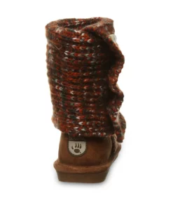 The Knit Tall Boot from BEARPAW® is the epitome of cutting edge fashion craftsmanship and quality – you can wear these tall or folded down for a fun look. These unique, cozy boots utilize a knit upper for a warm snug fit with a rounded toe, a genuine sheepskin lining to wick away moisture for comfort. BEARPAW® shoes and boots use the highest quality natural furs and genuine sheepskin.