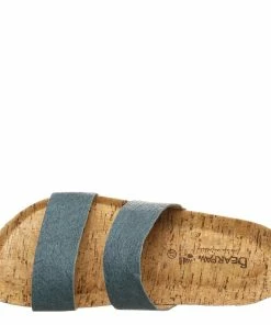 Slide into this perfect everyday summer sandal. Look good while feeling good; 100% vegan. Lightweight and simple eco-friendly Pinatex double band, slip-on styling. Cork and cotton blend upper lining and footbed top-cover, cork infused latex midsole and natural rubber outsole. Crafted in Spain.