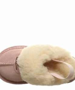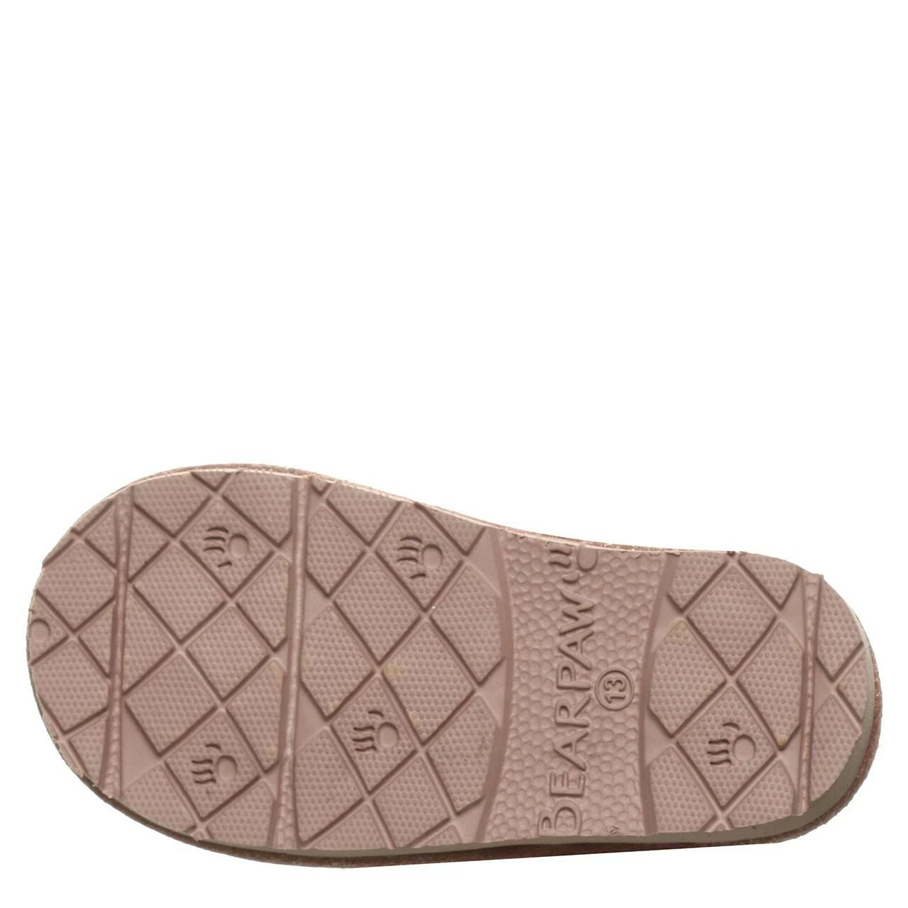 The BEARPAW® Loki is a plush way to start your day. These cozy toddler slippers feature soft suede uppers with a sheepskin collar that is easy to maintain and offers the utmost in comfort. Our sheepskin lining regulates body temperature to keep your feet warm, and the sheepskin footbed provides additional softness and reduces foot fatigue. The durable outsole makes the BEARPAW® Loki slipper the perfect indoor/outdoor choice. Tip: Order 1 size up, see size chart for details.