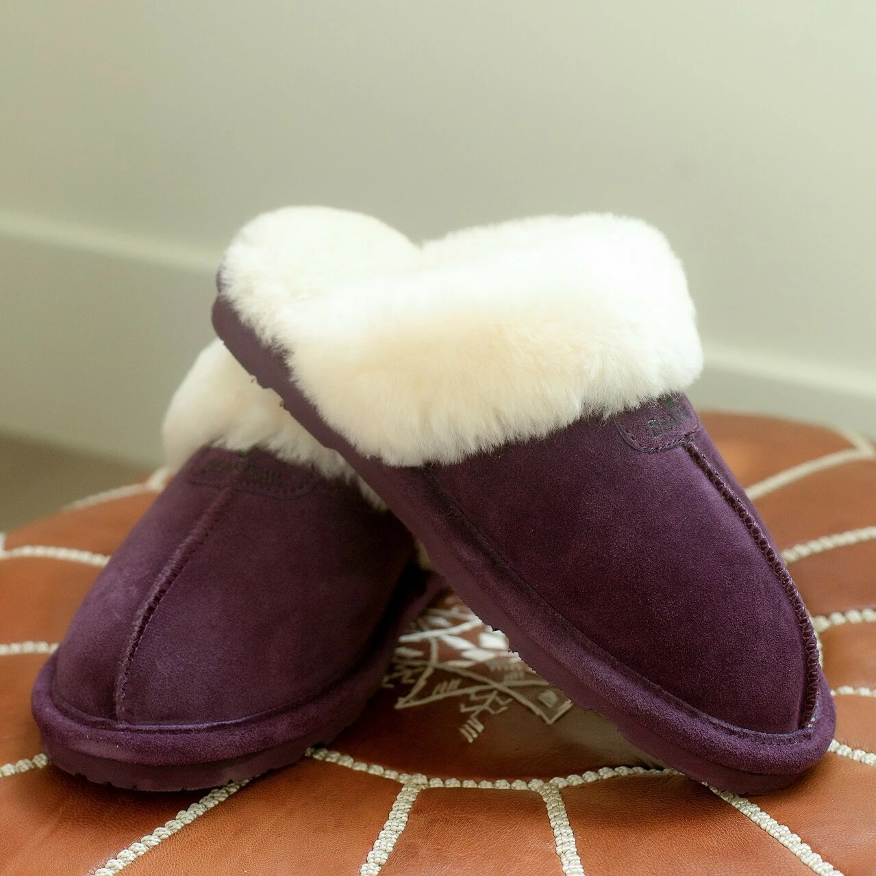 - Sheepskin collar with suede or quilted velvet upper