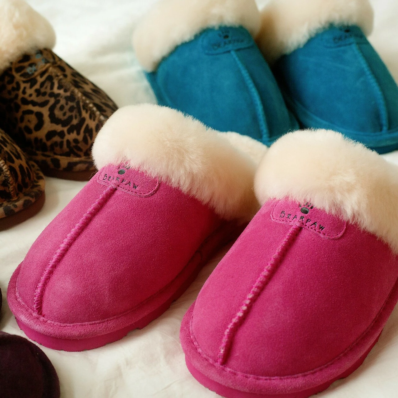 The BEARPAW® Loki is a plush way to start your day. These cozy women’s slippers feature soft suede uppers with a sheepskin collar that is easy to maintain and offers the utmost in comfort. Our sheepskin lining regulates body temperature to keep your feet warm, and the sheepskin footbed provides additional softness and reduces foot fatigue. The durable outsole makes the BEARPAW® women’s Loki slipper the perfect indoor/outdoor choice. Please note quilted colors Black, Light Grey and Blue Fog have velvet uppers. Gunmetal, Pink Glitter, Gold and Antique Bronze have a glitter, sparkle finish.