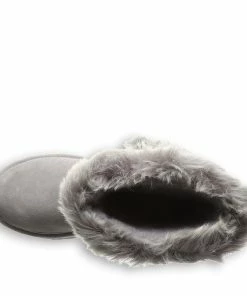 - Suede and faux fur upper