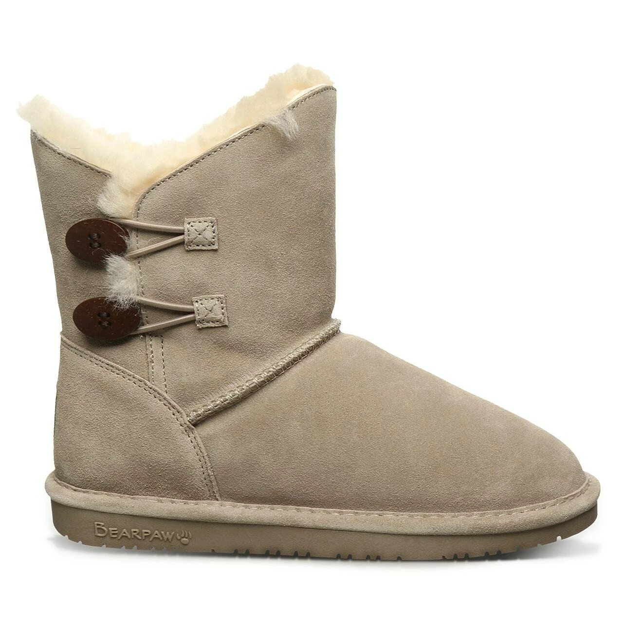 A definite must-have addition to your Bearpaw® boot collection. Featuring a double coconut toggle closure, you can tuck your pants in easily and enjoy a carefree day wearing these fabulously comfortable boots. As always, you can count on the cozy wool blend lining for warmth and the sheepskin footbed for cushioning and comfort. Treated with NeverWet® technology