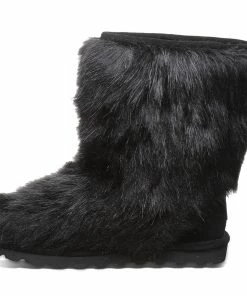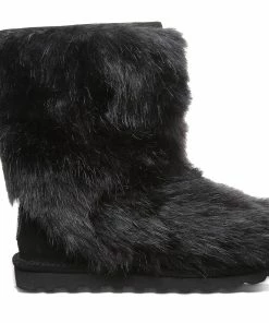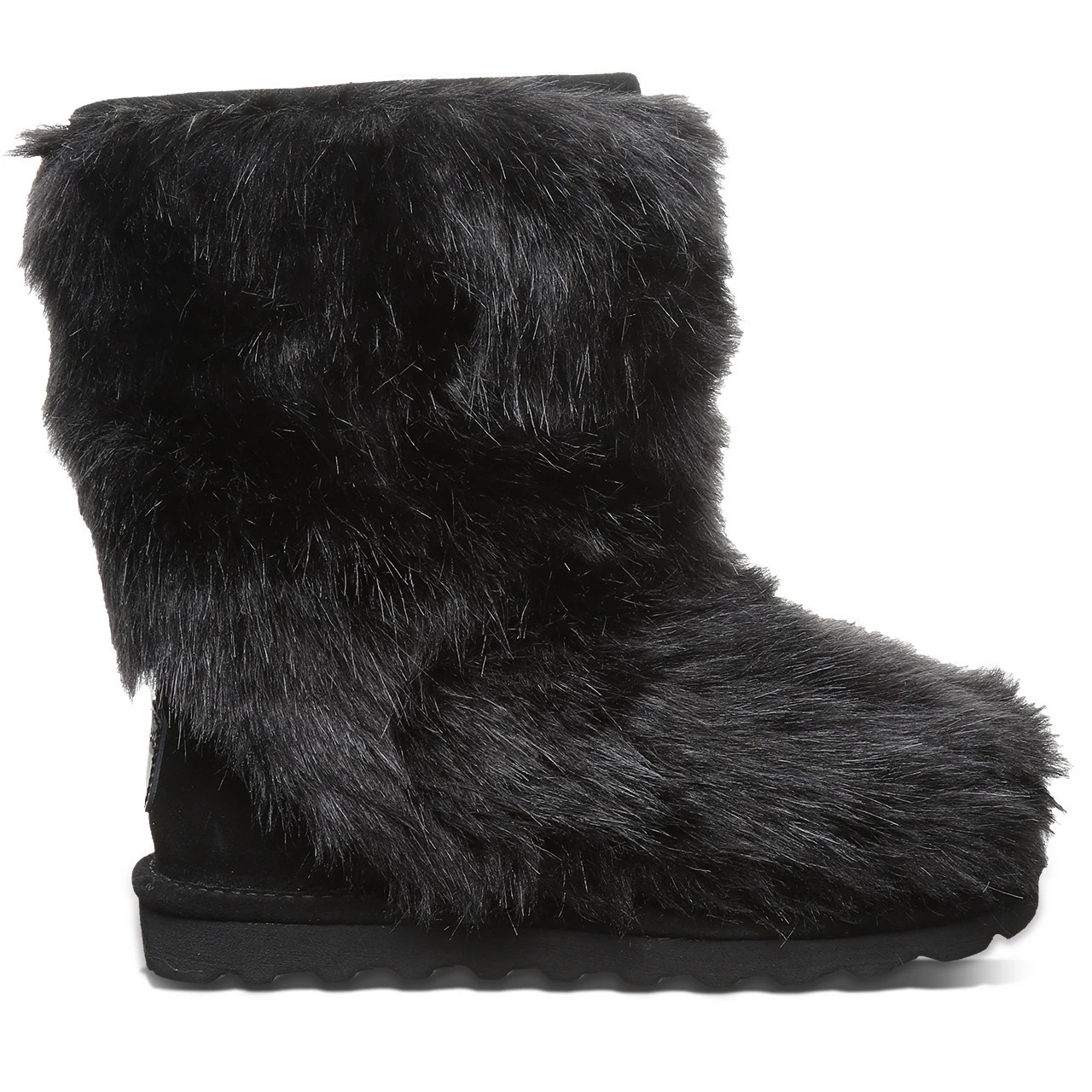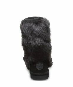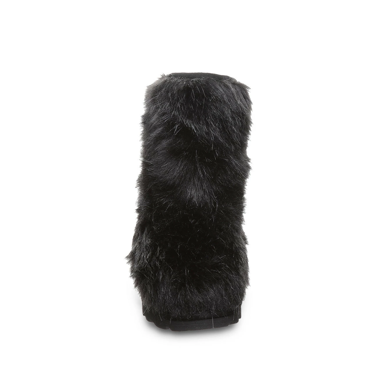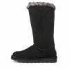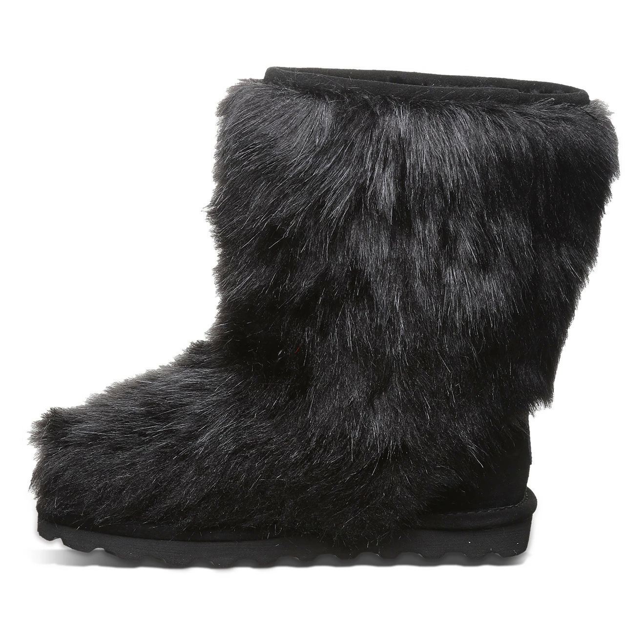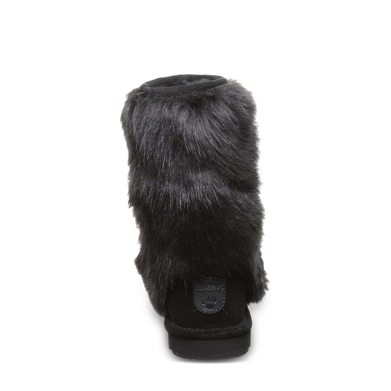 Turn heads and have their attention in this fuzzy statement piece. This boot is 8 inches tall, constructed of cow suede and finished with faux fur. Step into comfort with a wool blend lining and comfort sheepskin footbed.