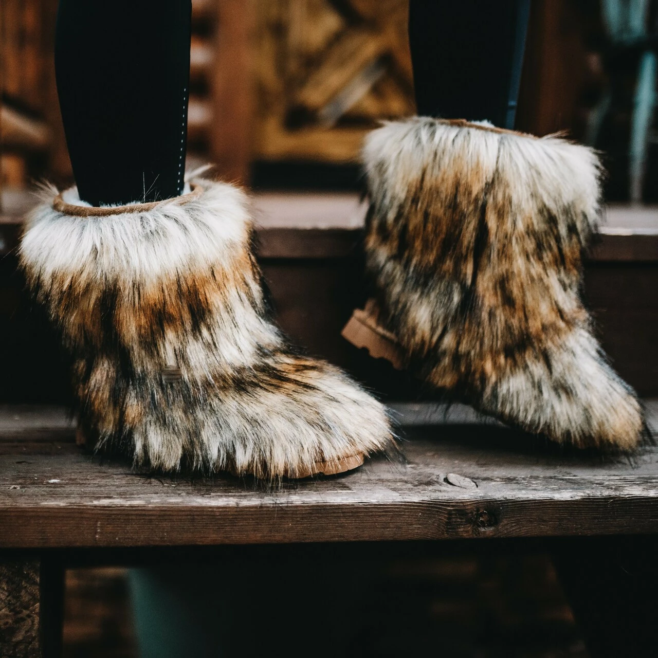 Turn heads and have their attention in this fuzzy statement piece. This boot is 8 inches tall, constructed of suede and finished with faux fur. Step into comfort with a wool blend lining and comfort sheepskin footbed.