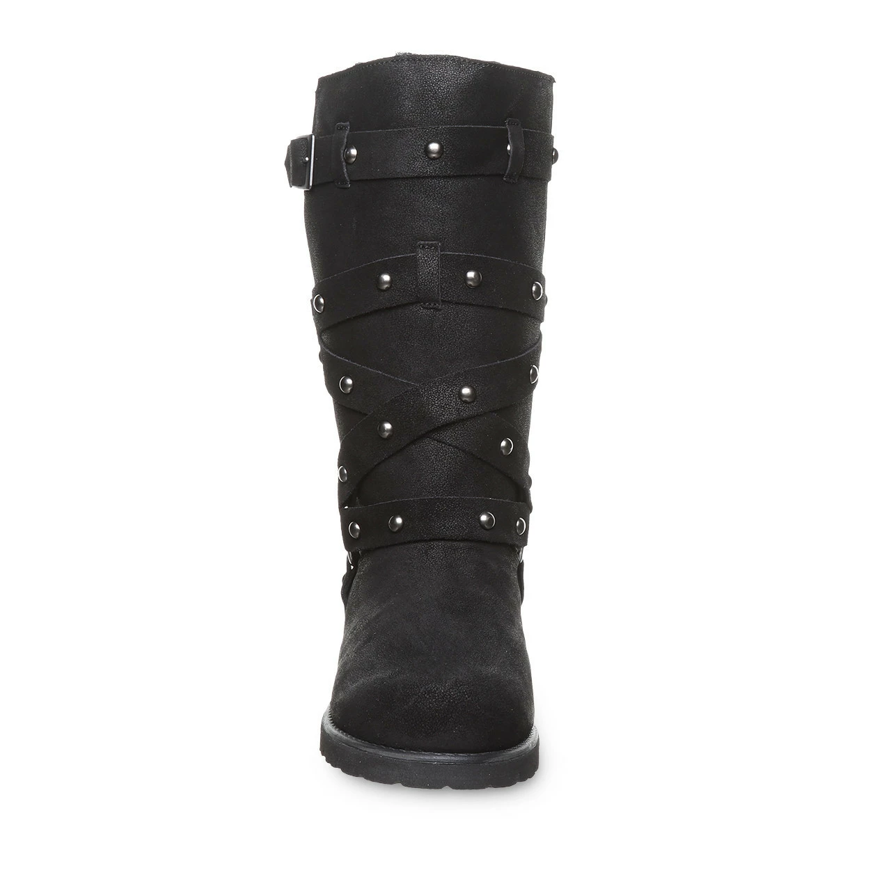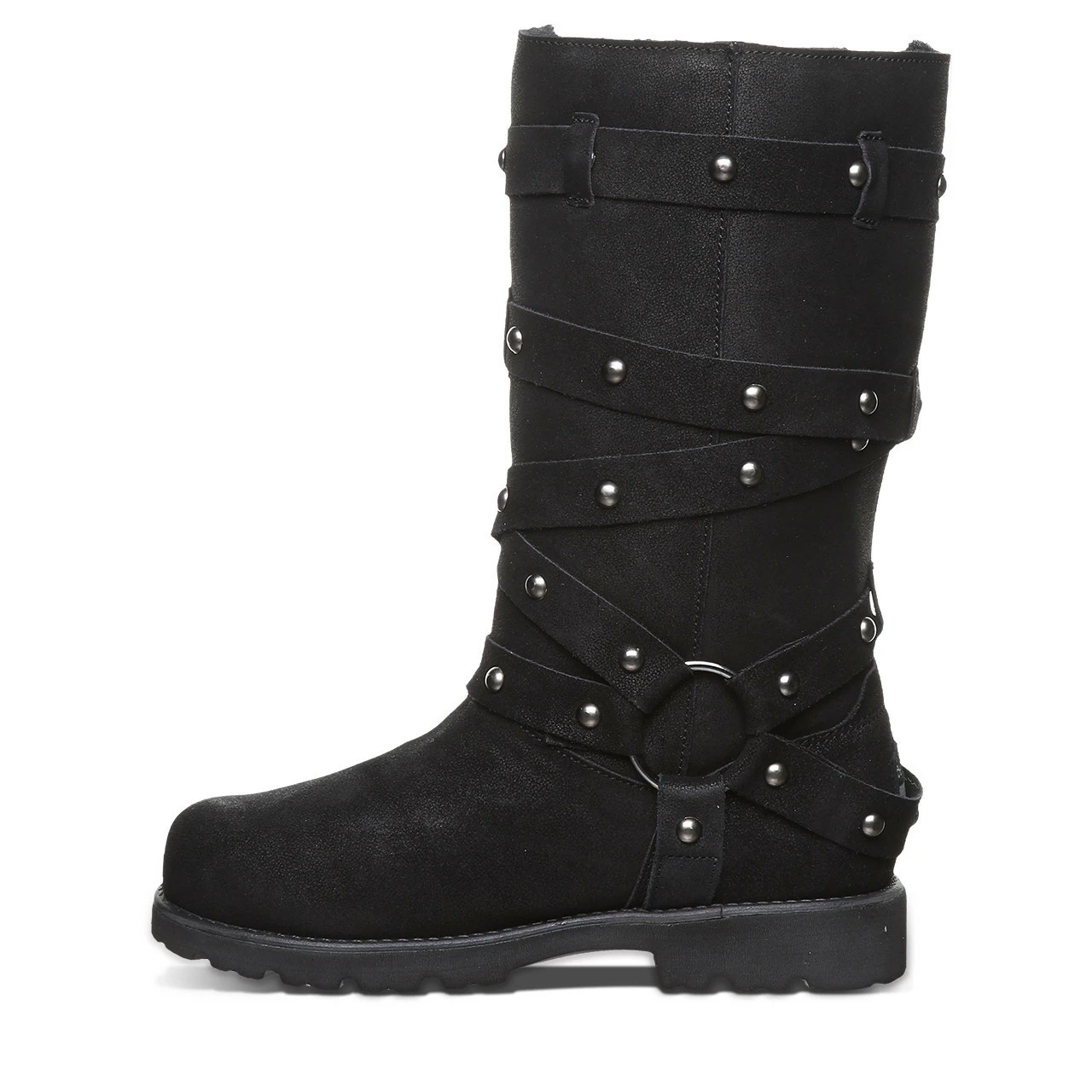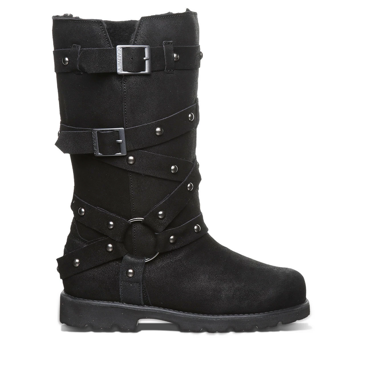 Rock and roll your way in these uniquely studded boots. Whether you’re heading to a casual kickback or hitting the town for a night out, these buckled boots can dress up or down no matter the occasion. With suede on the outside and wool blend lining on the inside, these fall/winter boots will be functional and fashionable.